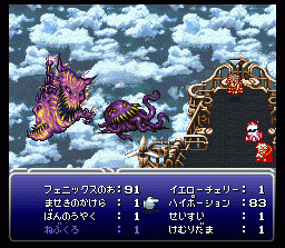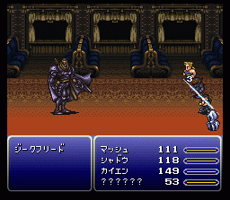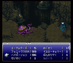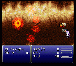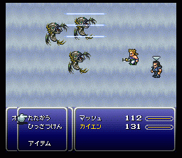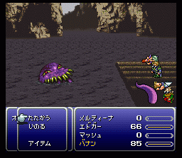 在游戏中一共要打4次之多的BOSS。BOSS的全体攻击要多加注意。蒂娜火魔法、艾德加用オートボウガン,马修用必杀技オーラキャノン,巴南每回合祈祷。章鱼会在某句对白后指明对一个人用强力的爪攻击,顺序分别是蒂娜、马修、巴南;蒂娜是抗不住这一下的,她死去之后就别管她了。