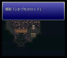 *这个洞跟先前的一样,之前经过时宝箱内没有好东西,如果把宝箱等到现在才开,内容就会发生变化,当中包括了一根重要的雷之杖(いかづちのロッド)。属性杖——FF低等级攻略中最有用的道具,除了魔法师装备外,使用道具投掷的效果是2级魔法,取决于使用者魔力的同时,杖引发的魔法威力会强好几倍!在游戏进行到魔导士之村前我们无法自由购买魔法杖,之前拿到的每一根都是极品。这个洞的宝箱同样可以等到崩溃后再开,内容会再升级成,但重要程度不及眼前的雷杖。