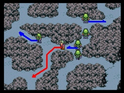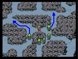 战役开始后分为三队,用Y键切换队伍。由于BOSS战有经验值,所以并不能让洛克参战。一开始动作快点把洛克那队调离,由飞天猪的队伍直接回避所有敌人冲向BOSS。躲避敌人的方法很简单:一开始先到左下角,等倒数第二个人走过之后马上到中间,因为最后一个人会走去左下角的位置,等他过了马上冲过去打BOSS。另外有一点要注意的,看见Lv9的同伴莫古了吗?虽然现在它还未正式成为同伴,但是它的装备菜单可以打开,装备也是可以脱下来的…(奸笑……)
