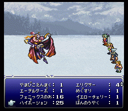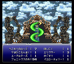 先对テュポーン使用バーサク魔法,也是到一定伤害就会进入第三回合。テュポーン的弱点是冰,用大约5根冰のロッド可以快速结束。
