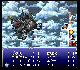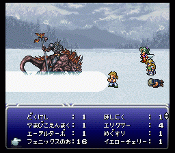 现在费加洛城内搜刮,得到回复药、不死鸟之尾、解毒药、金之针。切记以后每到一个城镇都要养成洗劫一空的好习惯^^。接着到商店购入ブラストボイス,バイオブラスト。把蒂娜和洛克都暂时调到前排,接着就去发生剧情,杰夫卡要人不成放火烧城,三人骑着CHOCOBO被魔导装甲从后袭击。