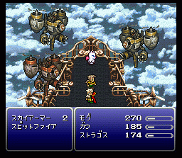 FF6整个流程的难度是先难后易,如抛物线般:开局难度缓升,到了崩溃前魔大陆上达到最高,崩溃后慢慢下降,越到后期越简单。所以这里其实已经是游戏最难的部分了,崩溃后你会发现越到后期越简单。