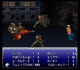 到了南费加洛后马上要开始大搜刮,屋外很多箱子和木桶都有回复用的道具。在镇上最有钱的人家里一共有两条秘道,一条可以拿到一个圣灵药,另外一条里面有一个重要道具加速靴エルメスのくつ。另外秘道里面还有一个ハイパーリスト和几千块钱,泪……。买装备就随便了,饰品方面建议还是买一双ダッシューズ吧。